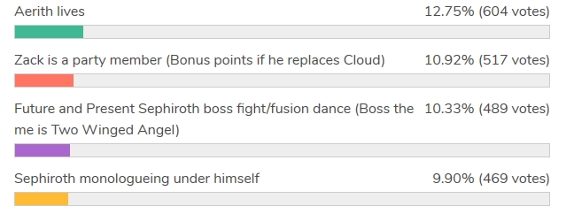 This, I think, is the big thing that's most likely to happen; it makes no thematic sense, not like Aerith's or Zack's deaths, but it's an it's-like-poetry-it-rhymes inversion that looks brilliant if you're thick. You still (theoretically) get the pop from the unexpected death *and* the praise from the media "subverting expectations" machine.