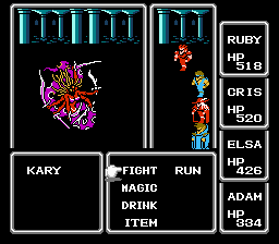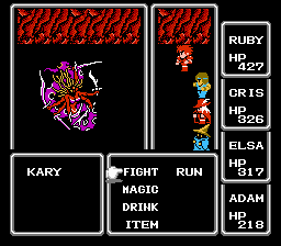 It was at this point in the game that the limitations of my party became evident. The Talking Time / old 1up forums once had this poster who insisted the game was much easier if, instead of going to the Gurgu Volcano to take out Kary at this point, you just went around the map and collected treasure, eventually taking out the Fiends of Wind and Water and saving Kary for last. Conventional wisdom at the forums also dictated that White Mages were useless, easily replaced by potions and another party member with higher attack power.