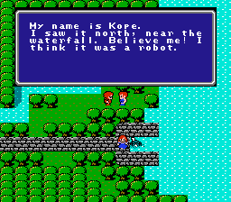 I've always found this "Please..." - all this robot can say after you take the CUBE that unlocks the Sky Castle - rather poignant. It's established the robots produced by the advanced ancient civilization that built the Sky Castle, left to fulfill worst-cast-scenario duties & duty-bequeathing their creators could not with their organic mortal lifespans could not, are breaking down, and all with which this robot is left after fulfilling their mission, seemingly succumbing to their internal circuits failing, is a remarkably human plea, one to empathy and pity.