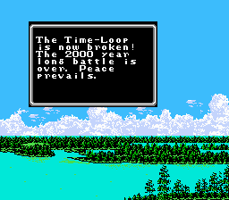 The ending is very happy to talk your ear off in a circumlocutious manner about the "Time-Loop," as if it's afraid you'll miss its cleverness. I'm sure they were proud of genre-busting and including a sci-fi element in a largely fantasy tale (with the presence of the Sky Castle foreshadowing the possibility of nonfantasy elements), but the Loop's not hard to understand (Party A gets sent to the past and does something that enables Party A to be sent in the first place), and it adds a bit of awkwardness to the ending. It's far from fatal, though - the bright colors and pixel art, combined with the proud congratulations from the well-written prose, paint a quite-effective picture of the world setting to rights and a sense of fulfillment after a long quest.
