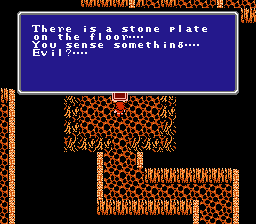 I'd argue that the Vampire carries another instance of tutorializing: he's labeled as one of the major threats in the region, and the nearest town has been ravaged by him, so it would of course make sense to go back to Melmond and the environs to see if anything's changed upon his defeat. The player is also confronted, however, with a mystery: the existence of an ominous metal plate in the room behind his chambers. This is a smart way to teach the player that dungeons will sometimes contain obstacles that require outside help to progress past. The player isn't given a clear way to deal with this plate, but at the same time, she has a clear reason (with the Vampire's defeat) to go back to the surface, where she'll be pointed to Sarda and his mighty ROD and understand that sometimes you need further keys to open doors in dungeons.
